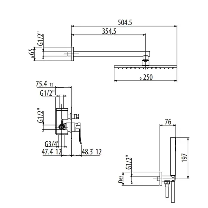 Gattoni Soffio Душевой комплект с встраиваемым смесителем, верхн душ 25х25см., ручн душ, шланг 150см, цвет: черный матовый