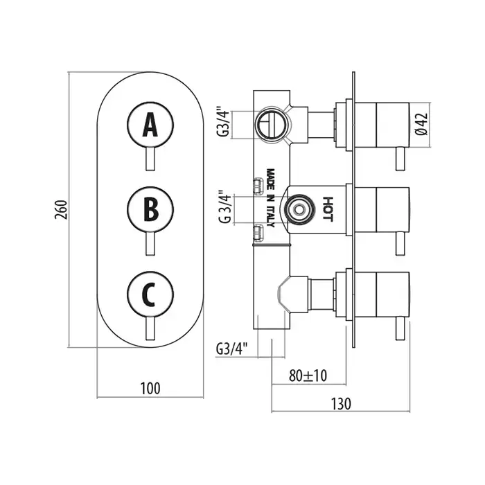 Gattoni Termostatici Термостатический встраиваемый смеситель для душа на 2 источника, цвет хром