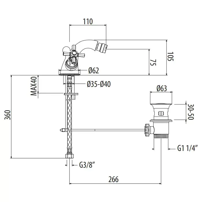 Gattoni TRD Смеситель для биде, 1 отв., ручки Paris, цвет: золото 24К