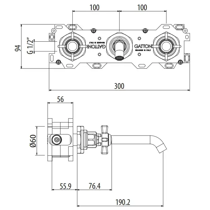 Gattoni TRD Смеситель для раковины, встраиваемый, ручки London, цвет: золото 24К
