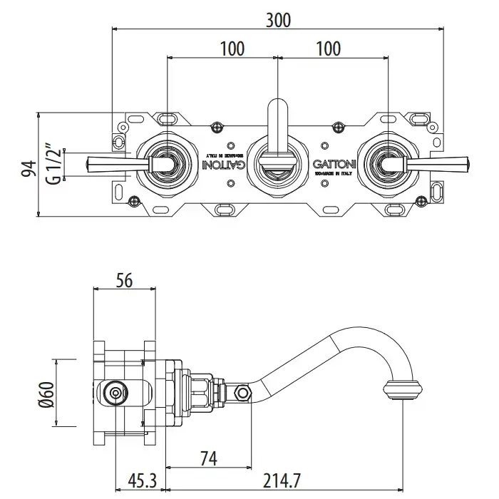 Gattoni TRD Смеситель для раковины, встраиваемый, ручки Moscow, цвет: хром