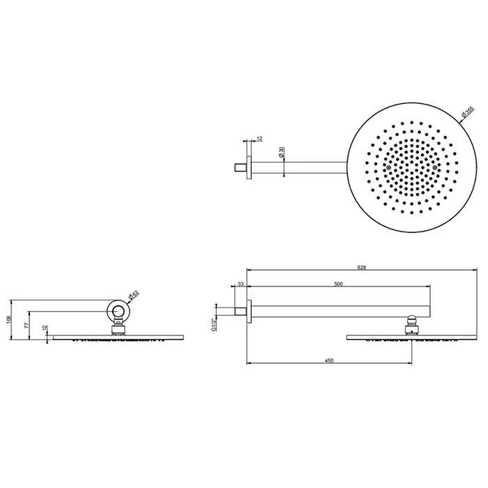Gessi 316 Душевая головка шарнирная для настенного крепления на 1/2", Ø350мм, цвет: brushed black metal pvd