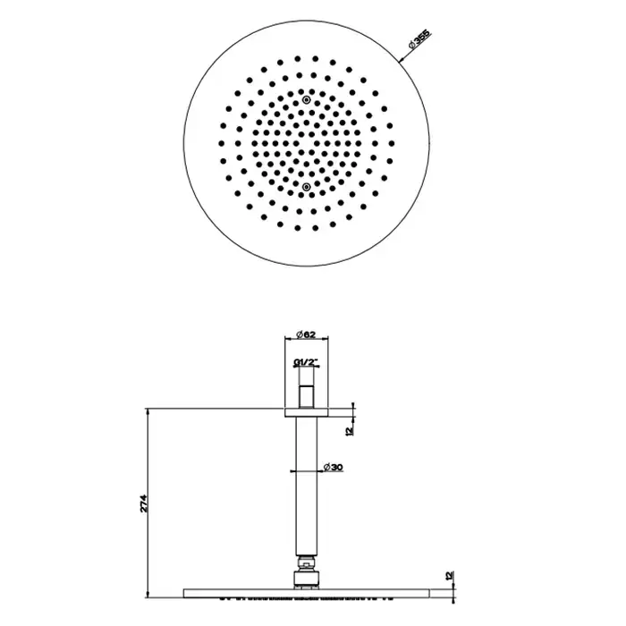 Gessi 316 Душевая головка шарнирная, потолочная на 1/2”, Ø355мм, h=243мм, цвет: brushed black metal pvd