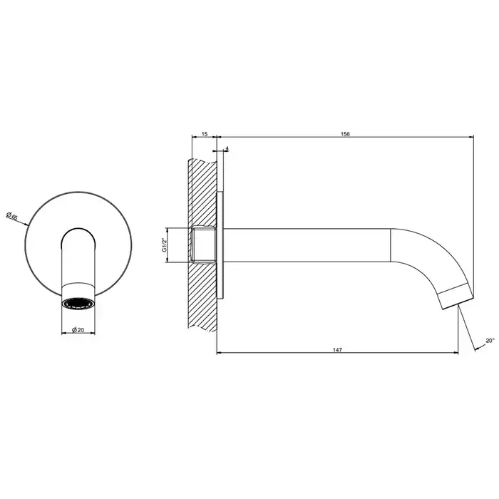 Gessi 316 Настенный излив 14.6см., на 1/2”, комбинируемый с удаленным управлением (не входит в комплект), цвет: Black XL