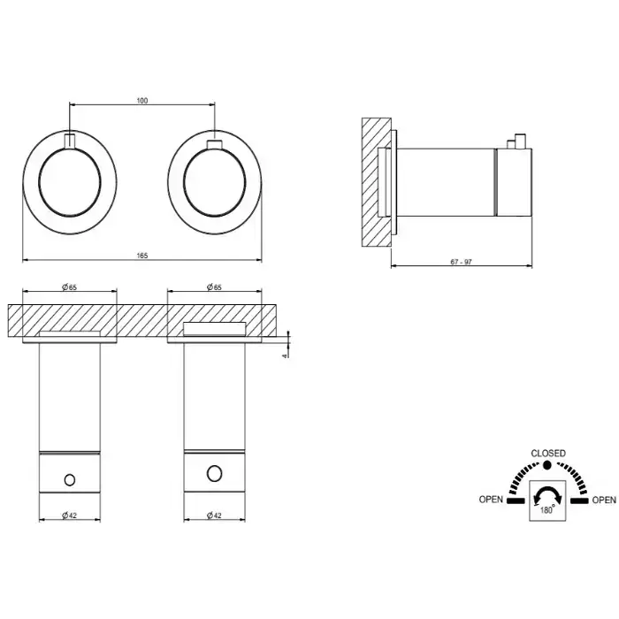 Gessi 316 Смеситель для душа, встраиваемый, термостатический, с переключателем на 2 положения, цвет: Steel Brushed
