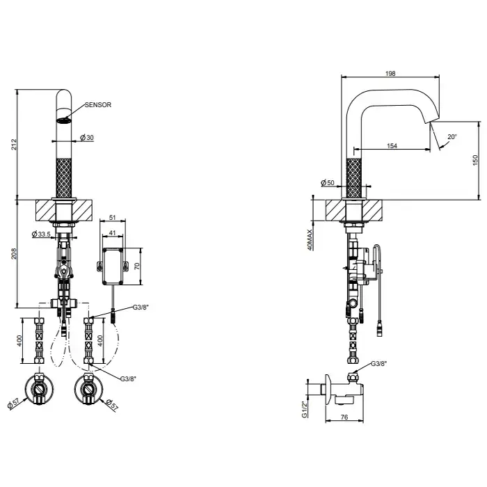 Gessi 316 Смеситель для раковины, 1 отв., электронный, с кран-фильтром для регулировки температуры и напора воды, цвет: Steel Brushed