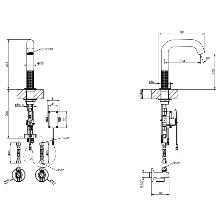 Gessi 316 Смеситель для раковины, 1 отв., электронный, с кран-фильтром для регулировки температуры и напора воды, цвет: Steel Brushed