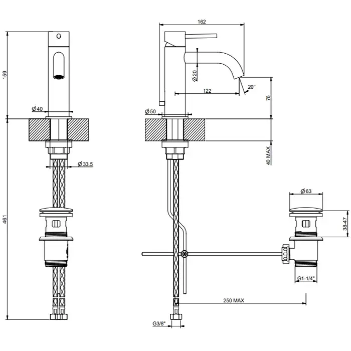 Gessi 316 Смеситель для раковины, 1 отв., с донным клапаном, цвет: Black XL