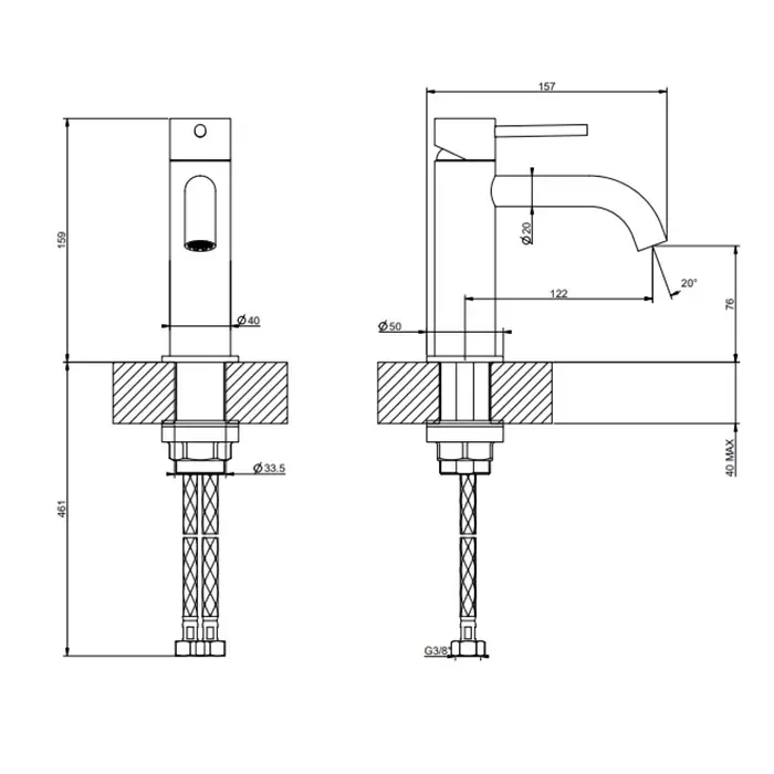 Gessi 316 Смеситель для раковины, на 1 отв., без донного клапана, излив 15.6см, h=20см., цвет: Black XL