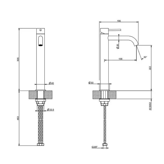 Gessi 316 Смеситель для раковины, на 1 отв., высокий h: 30.5см., излив 15.5см, цвет: Brushed Brass PVD