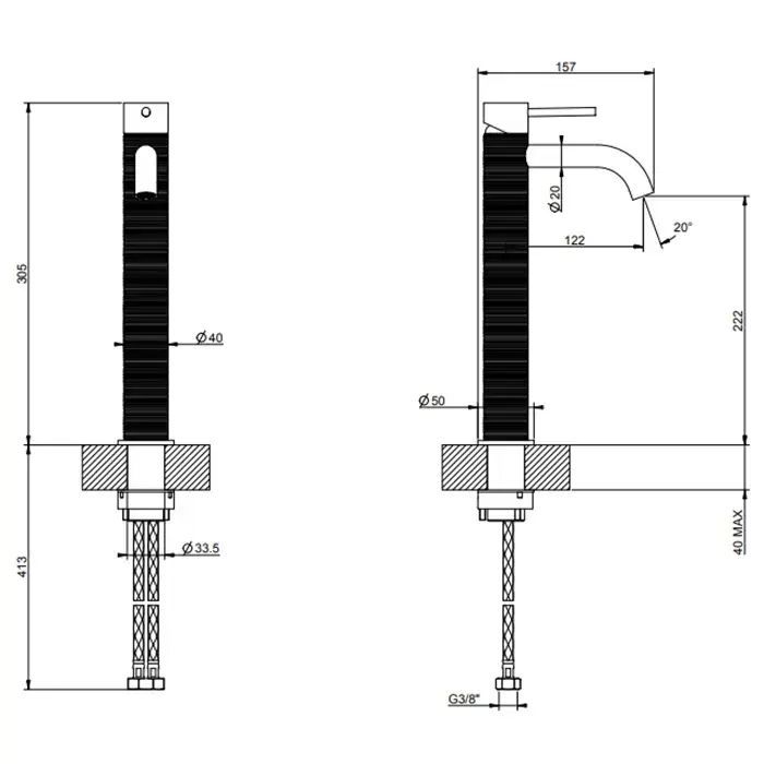 Gessi 316 Смеситель для раковины, на 1 отв., высокий, h: 305мм, излив: 123мм, цвет: brushed black metal pvd