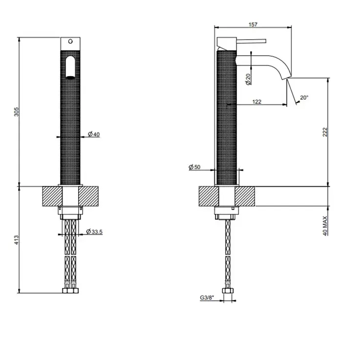 Gessi 316 Смеситель для раковины, на 1 отв., высокий, h: 305мм, излив: 123мм, цвет: brushed black metal pvd