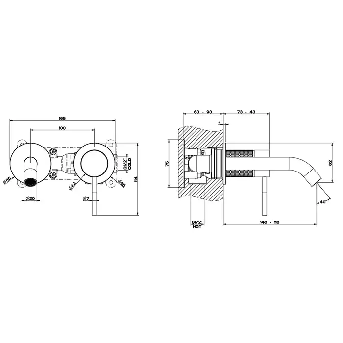 Gessi 316 Встраиваемый смеситель для раковины с изливом 146-116мм, внешняя часть, цвет: brushed black metal pvd