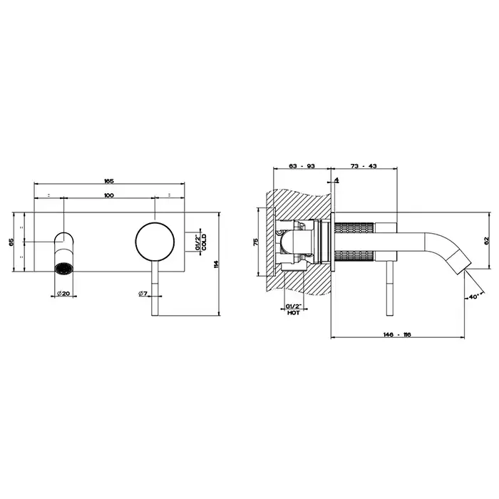 Gessi 316 Встраиваемый смеситель для раковины с изливом 146-116мм, внешняя часть, цвет: brushed black metal pvd