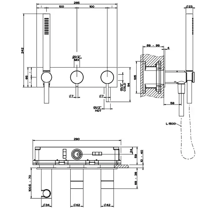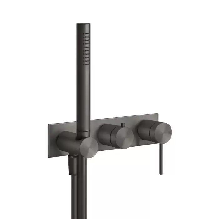 Gessi 316 Встраиваемый смеситель для ванны, автомат переключатель ванна-душ, держатель неподвижный, внешняя часть, цвет: brushed black metal pvd