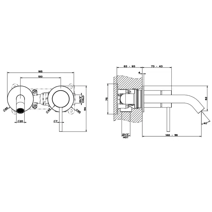 Gessi 316 Встраиваемый смеситель с изливом 146-116мм, внешняя часть, цвет: steel brushed