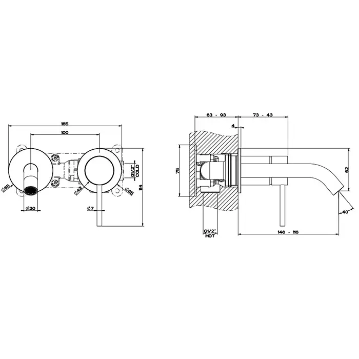 Gessi 316 Встраиваемый смеситель с изливом 146-116мм, внешняя часть, цвет: brushed black metal pvd