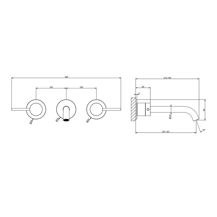 Gessi 316 Встраиваемый смеситель с изливом 200-180мм (внешние части), цвет: Black XL