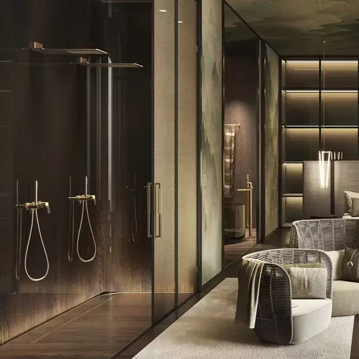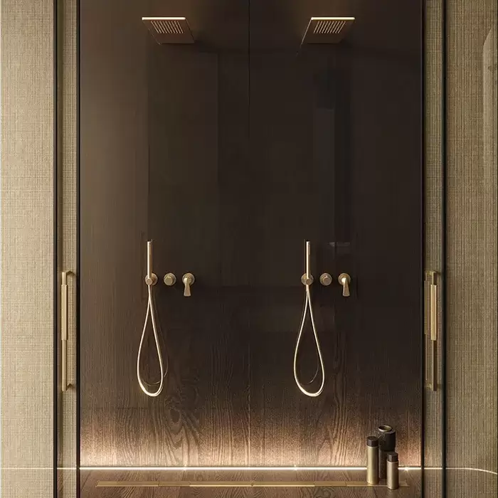 Gessi Anello Душевой гарнитур с держателем, подводом воды, ручным душем и шлангом 150см., цвет: Warm Bronze Br. PVD