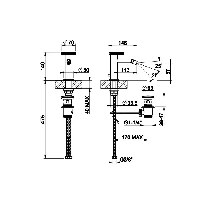 Gessi Anello Смеситель для биде на 1 отв., с донным клапаном, цвет: хром