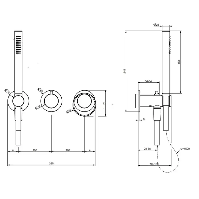 Gessi Anello Смеситель для душа, встраиваемый, на 2 выхода с перекл., ручным душем с держателем и выводом воды (внешние части), цвет: Black XL