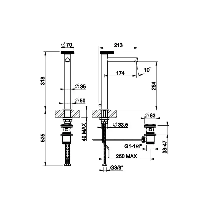 Gessi Anello Смеситель для раковины высокий с длинным изливом, с донным клапаном, цвет: хром