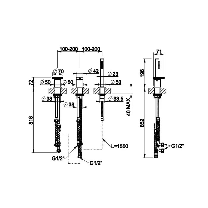 Gessi Anello Смеситель для ванны на 3 отверстия, девиатор, шланг, лейка. Наполнение через слив-перелив, цвет: хром