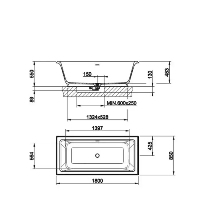 Gessi Eleganza Ванна отдельностоящая 180х85x55см, со сливом-переливом, цвет: матовый белый