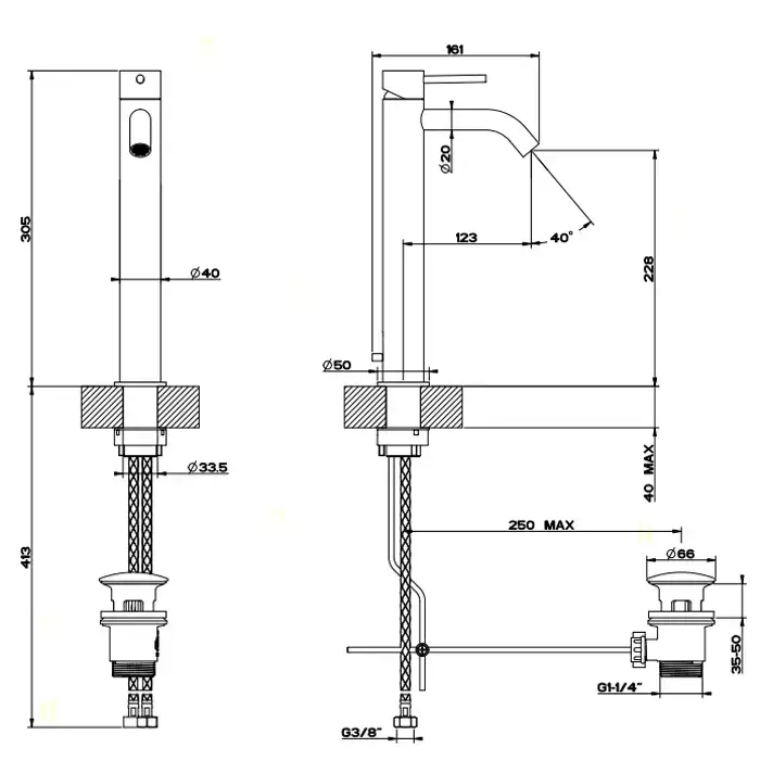 Gessi Flessa Смеситель однорычажный высокий с донным клапаном, цвет: шлифованная сталь