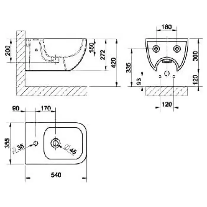 Gessi Goccia Биде подвесное 54х35см, с 1 отверстием под смеситель, цвет: белый