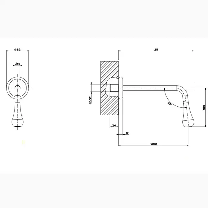 Gessi Goccia Настенный излив 200мм, для монтажа с удаленным управлением 33700/33743 (не входит в комплект), цвет: хром