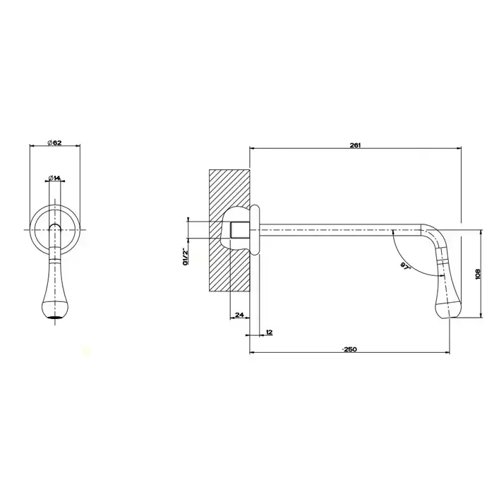 Gessi Goccia Настенный излив 250мм, для монтажа с удаленным управлением, цвет: black XL