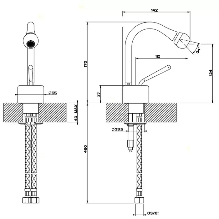 Gessi Goccia Смеситель для биде, на 1 отв., цвет: Copper Brushed GHRC