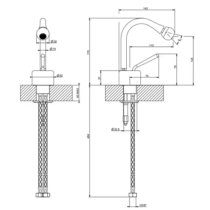 Gessi Goccia Смеситель для биде на 1 отверстие, цвет: шлифованный хром