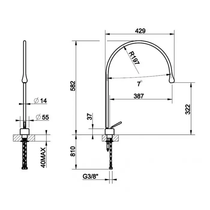Gessi Goccia Смеситель для раковины на 1 отверстие, излив 387мм R=197, цвет: белый
