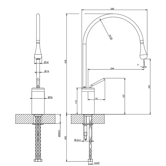 Gessi Goccia Смеситель для раковины на 1 отверстие, высокий, излив 244мм R=125, цвет: шлифованный хром