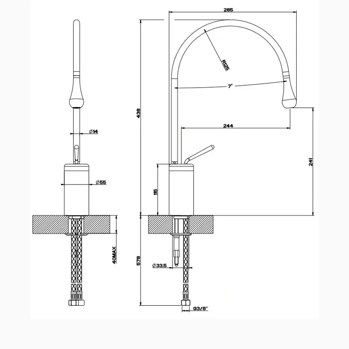 Gessi Goccia Смеситель для раковины на 1 отверстие, высокий, излив 244мм R=125, цвет: хром