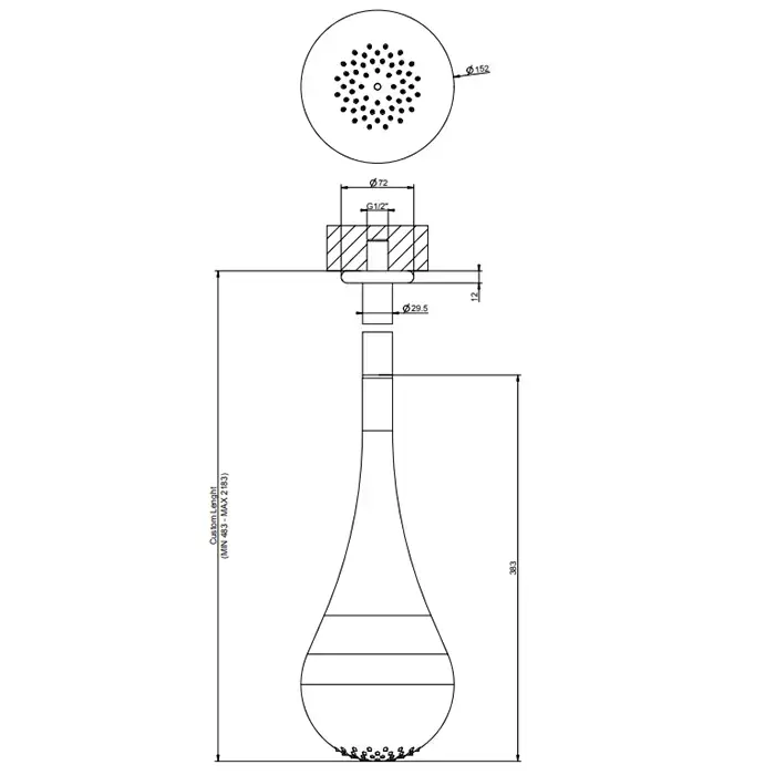 Gessi Goccia Верхний душ для потолочного крепления каплевидной формы, с инд.высотой (490-2100мм), цвет: черный
