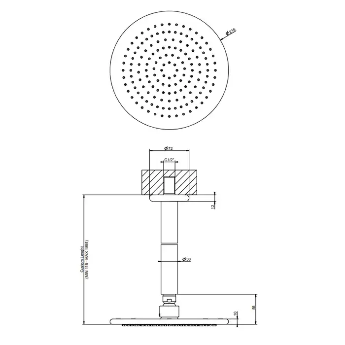 Gessi Goccia Верхний душ для потолочного крепления Ø216мм с инд.высотой (50-1800мм), цвет: белый