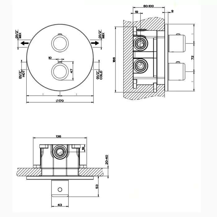 Gessi Goccia Встраиваемый термостатический смеситель, подключение на 3/4”, с переключателем на 2 выхода, внешняя часть, цвет: хром