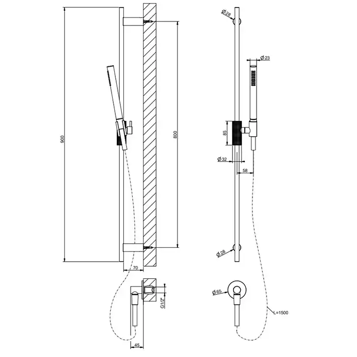Gessi Habito Cesello Душевой гарнитур с штангой, выводом воды, ручным душем и шлангом 150см., цвет: хром