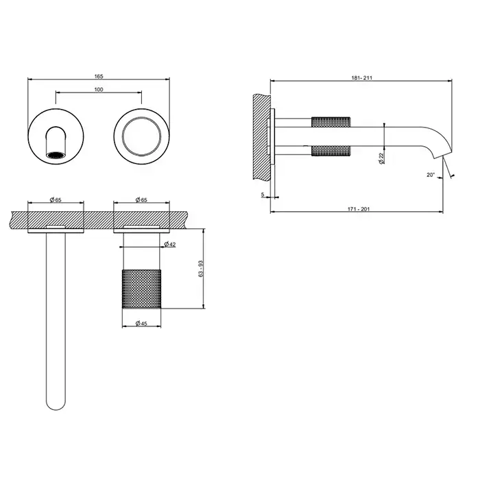 Gessi Habito Cesello Смеситель для раковины, встраиваемый, излив: 18см., цвет: хром