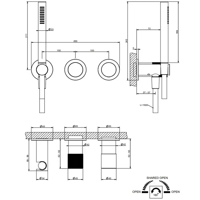 Gessi Habito Diamantato Смеситель для душа, настенный, с переключателем на 2 положения, ручным душем и держателем, цвет: Finox Brushed Nickel