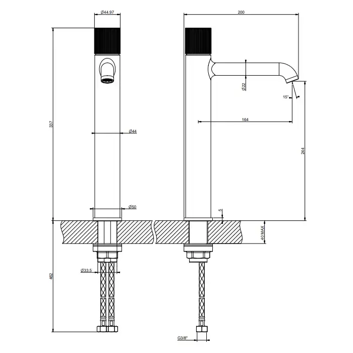 Gessi Habito Rigato Смеситель для раковины, высокий, 1 отв., без донного клапана, цвет: Finox Brushed Nickel