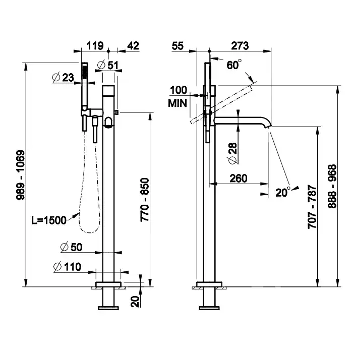 Gessi Habito Rigato Смеситель для ванны, напольный, цвет: Matte Black