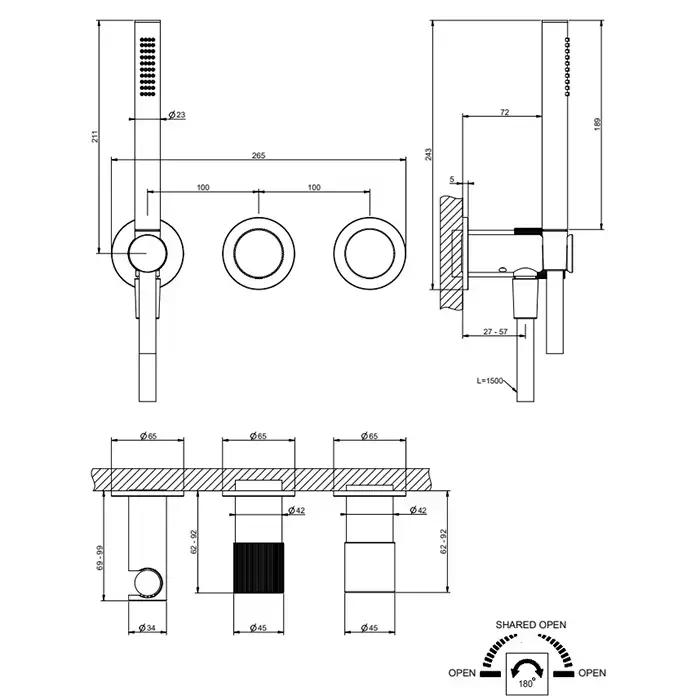Gessi Habito Rigato Смеситель настенный встраиваемый, однорычажный, с переключателем на 2 положения, с ручным душем, настенным держателем, цвет: хром