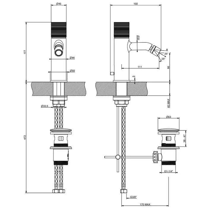 Gessi Habito Trame Смеситель для биде, на 1 отв, с донным клапаном, цвет: Black Metal PVD