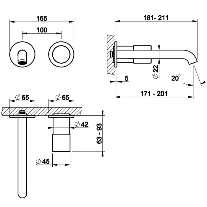 Gessi Habito Trame Смеситель для раковины, настенный, цвет: Finox Brushed Nickel