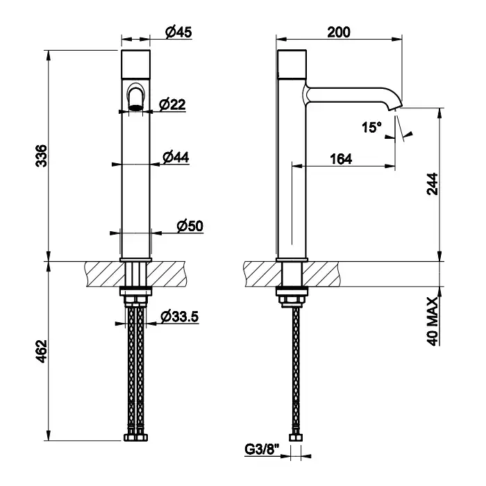 Gessi Habito Trame Смеситель для раковины, высокий, 1 отв., без донного клапана, цвет: Black Metal Brushed PVD