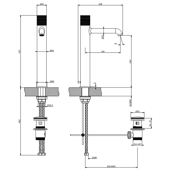Gessi Habito Trame Смеситель для раковины, высокий, 1 отв., с донным клапаном, цвет: Black Metal Brushed PVD